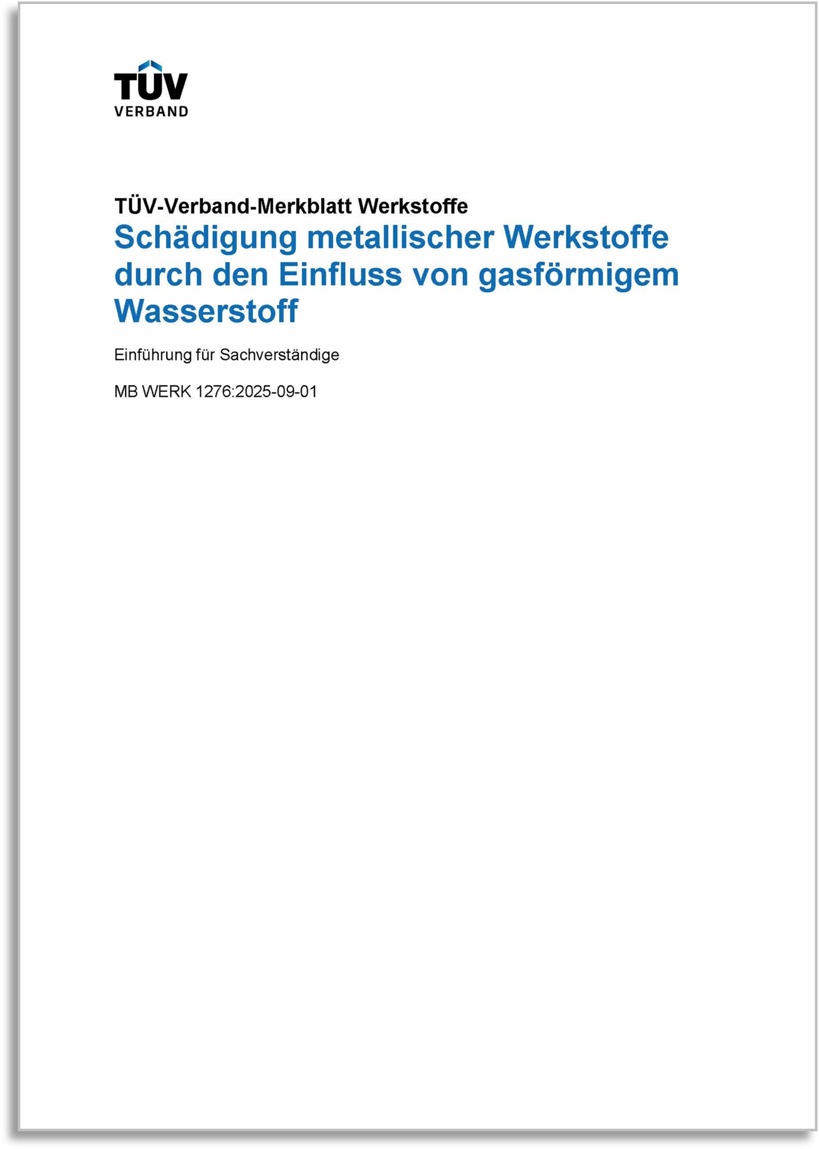 Schädigung metallischer Werkstoffe durch den Einfluss von gasförmigem Wasserstoff - Einführung für Sachverständige (Ausgabe: 2025-09-01)