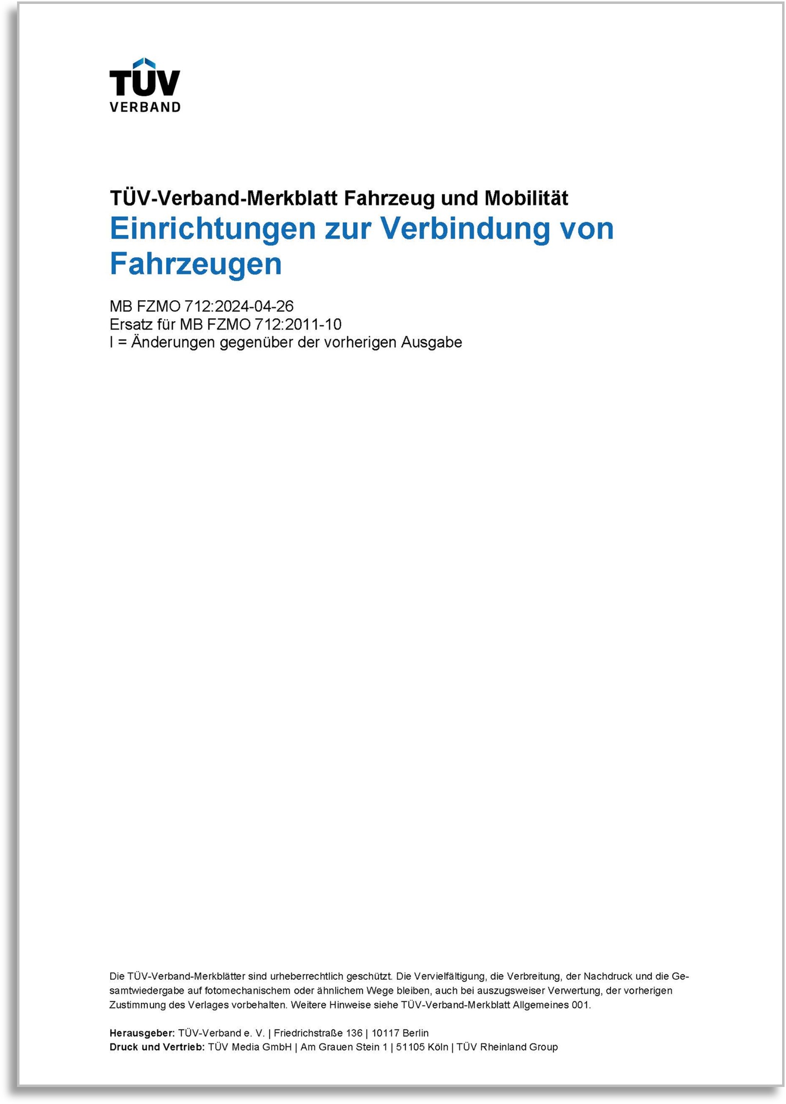Dieses Merkblatt ist vom TÜV-Verband e.V. in Zusammenarbeit mit den Mitgliedern des Arbeitskreises „Einrichtungen zur Verbindungen von Fahrzeugen und Auflaufbremsen“ erstellt worden.