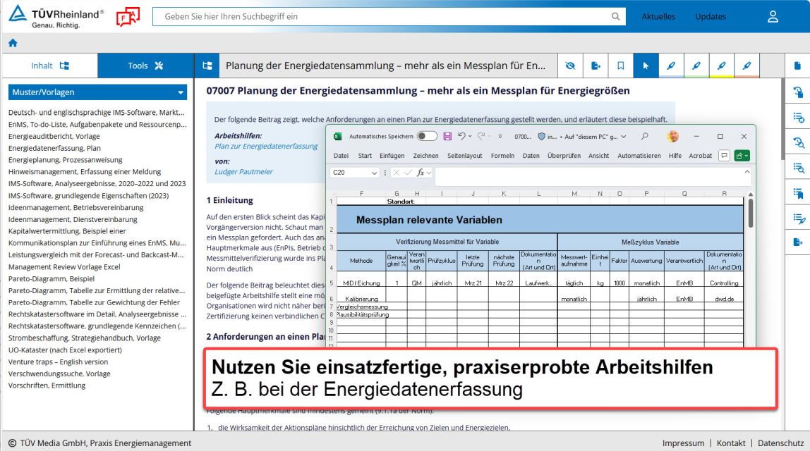 Neben praxisorientierten Fachbeiträgen liefert es konkrete Umsetzungshilfen, Checklisten und Mustervorlagen zum Thema Energiemanagement. So verfügen Sie über das notwendige Wissen und die Werkzeuge zur wirksamen Steigerung der Energieeffizienz und zur Einführung und Zertifizierung eines Energiemanagementsystems.