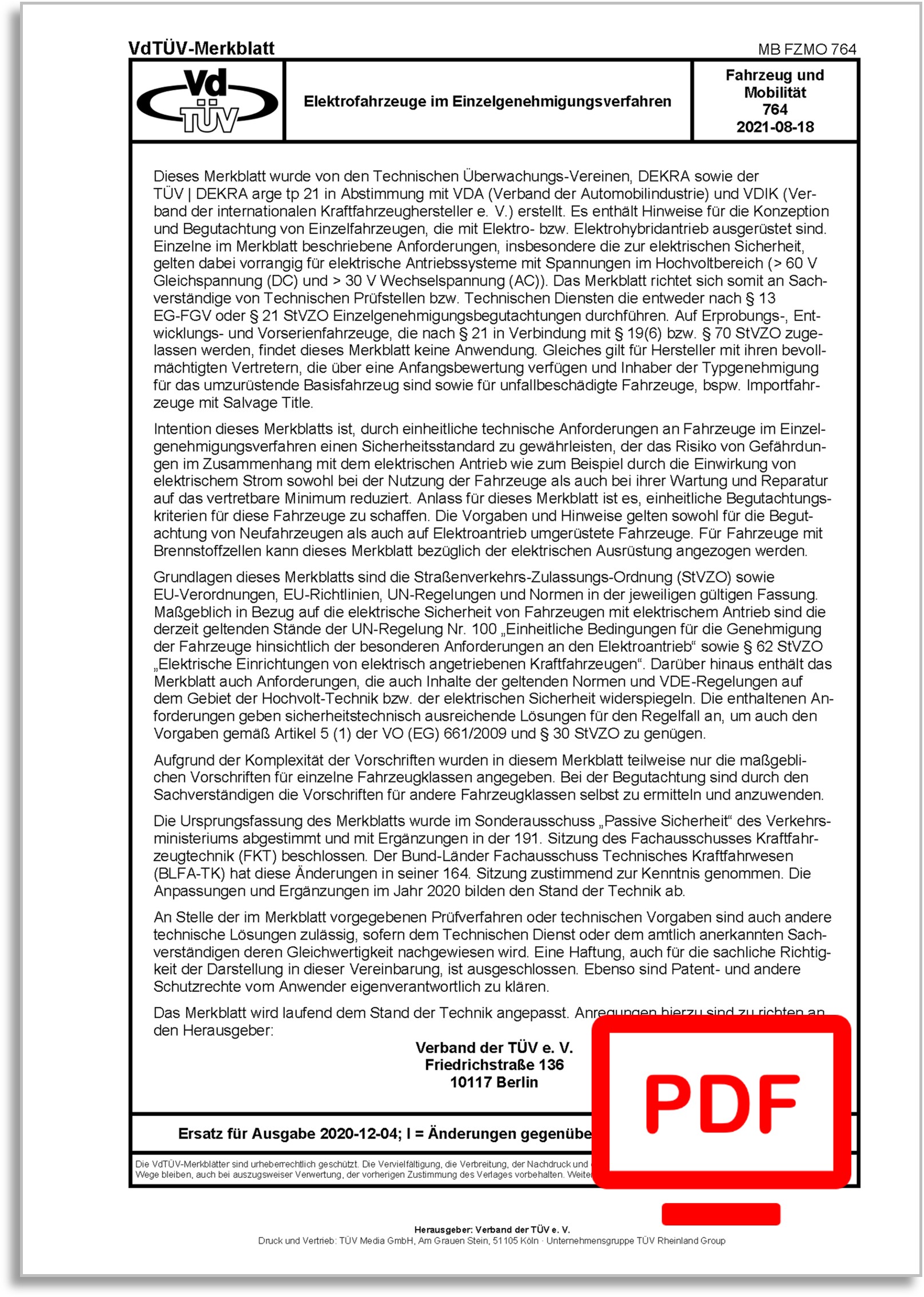 - MB FZMO 764 - Elektrofahrzeuge im Einzelgenehmigungsverfahren (Ausgabe: 2021-08-18)